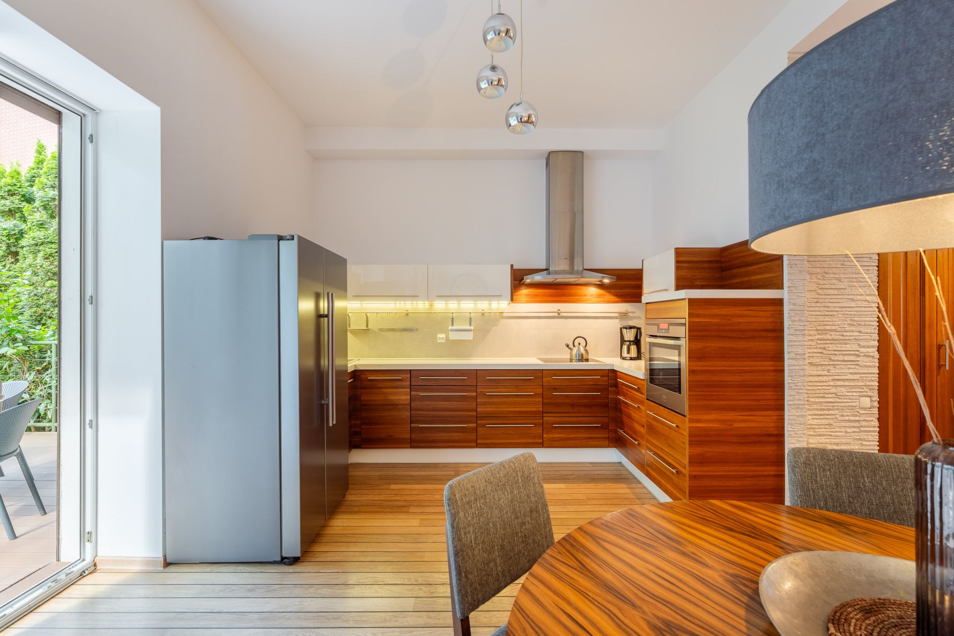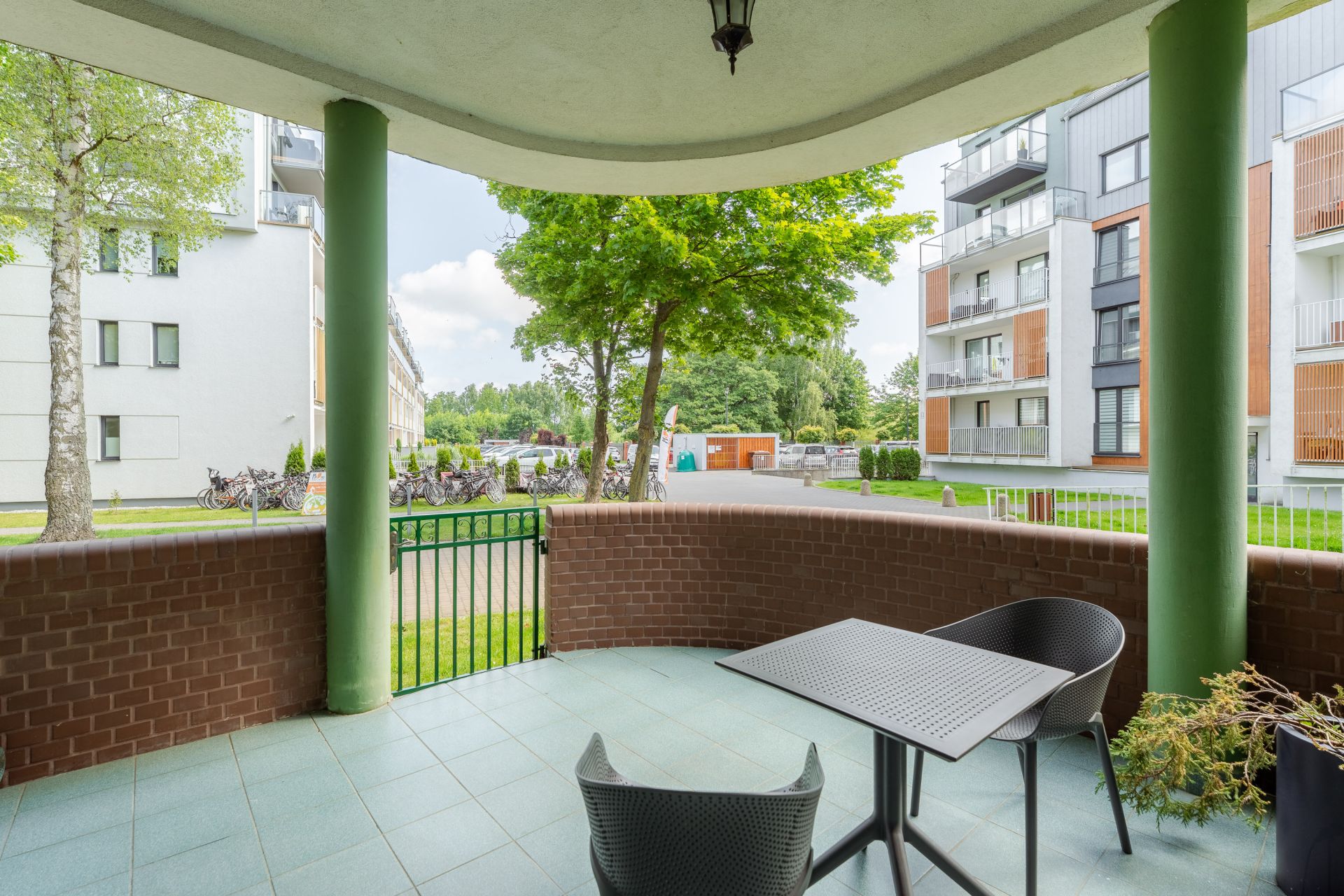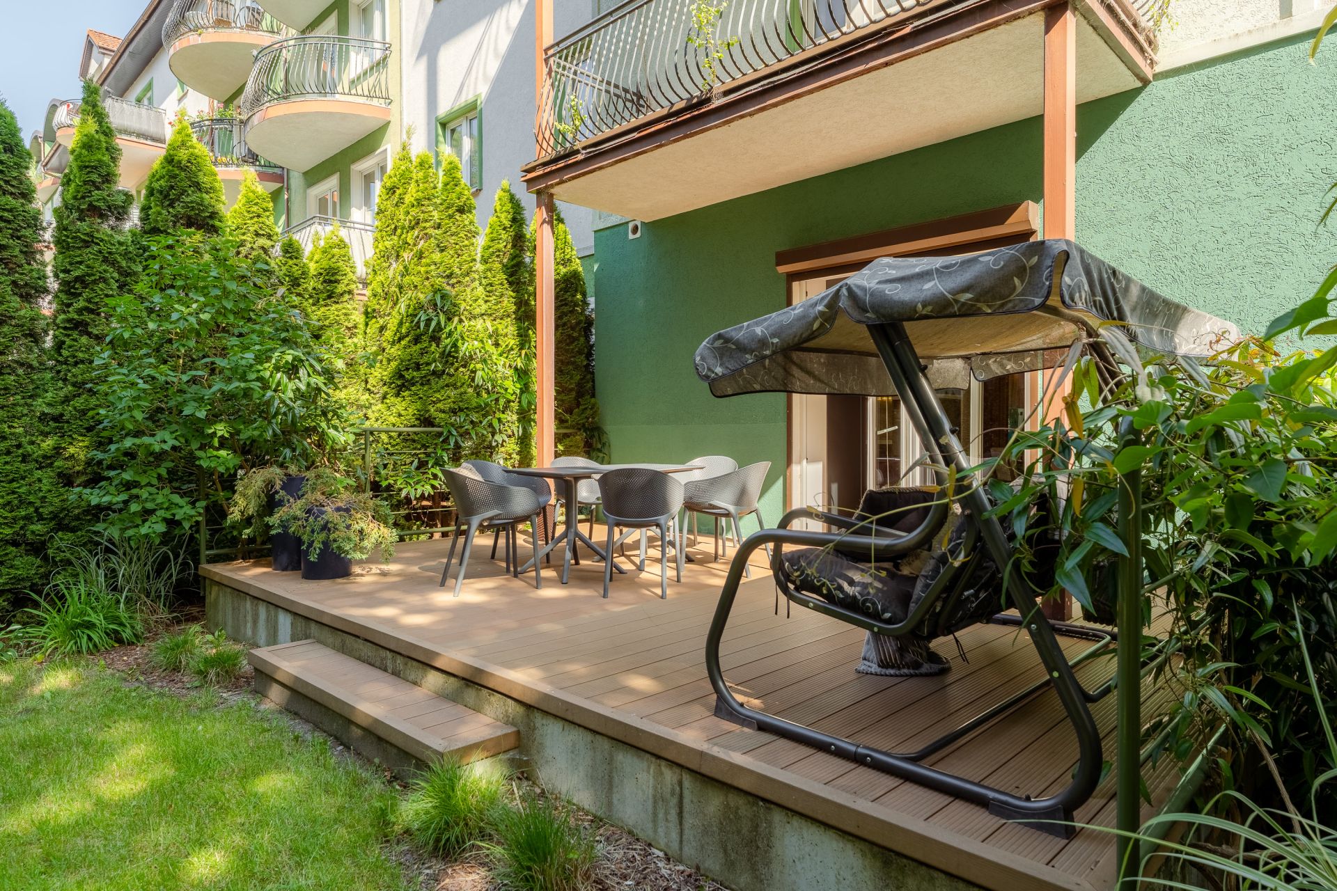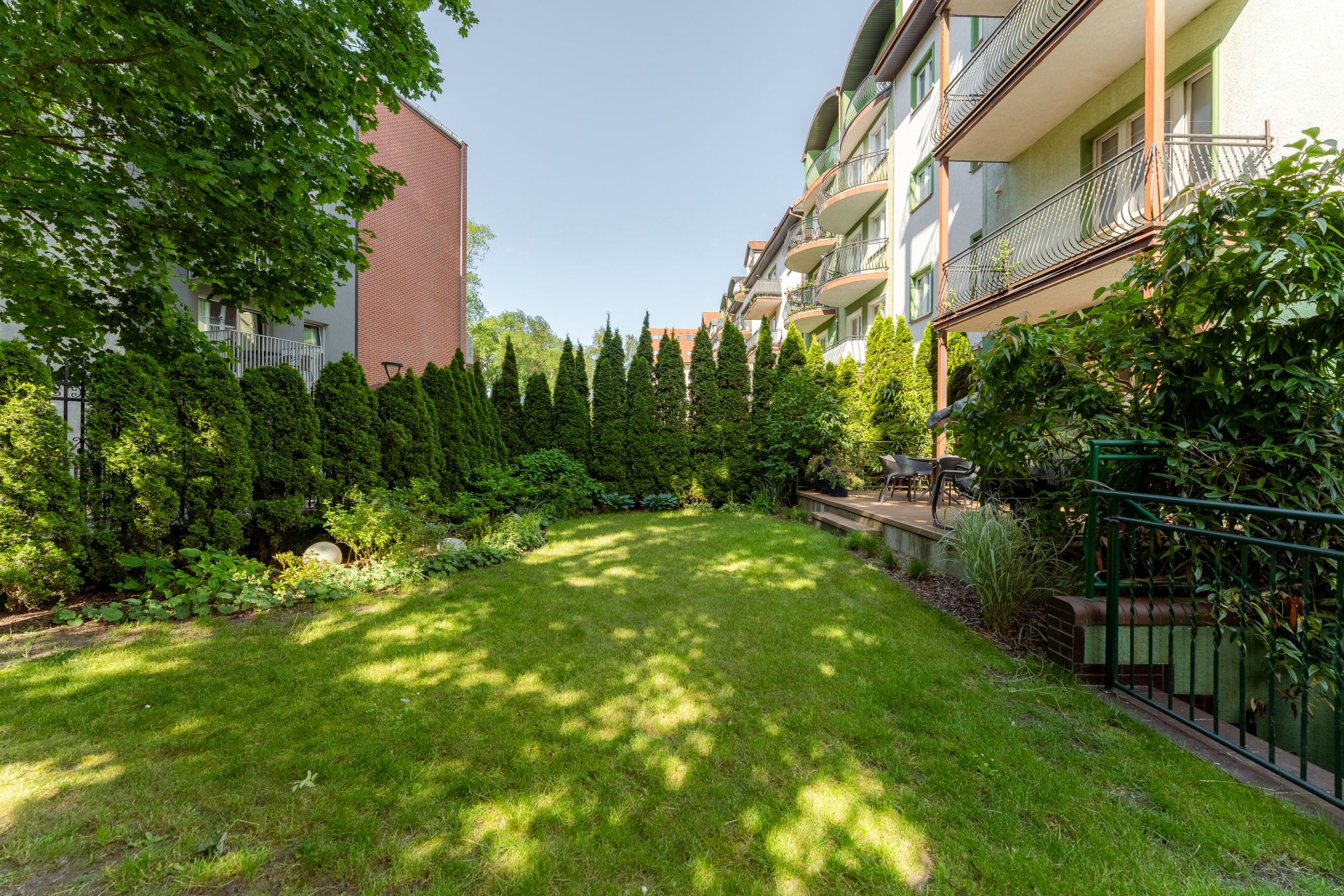 bezpośrednie wyjście na prywatny ogródek z meblami ogrodowymi i miejscem na grilla – idealne miejsce na relaks na świeżym powietrzu.